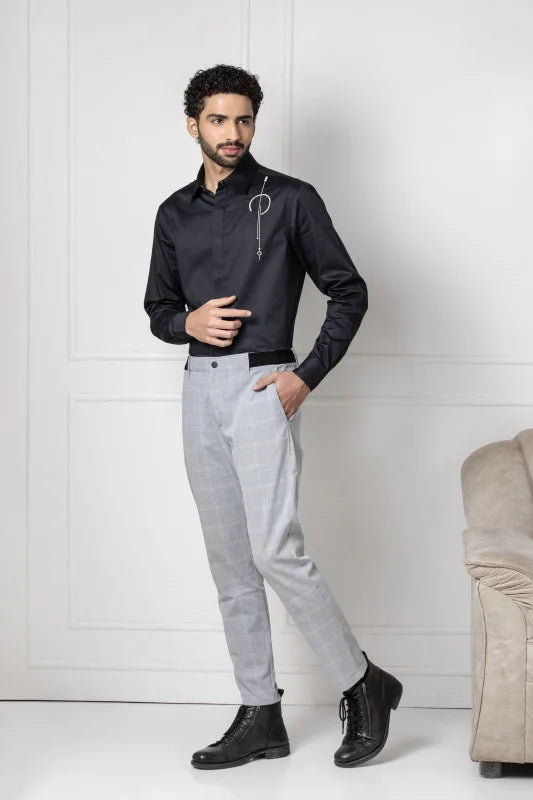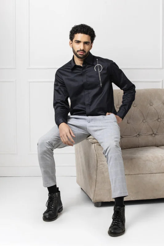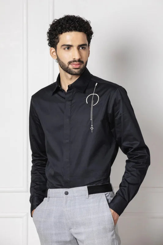 Step into the spotlight with this Midnight Arc Designer Shirt by Berryn Luiz. Crafted from luxury mercerized cotton, this shirt offers a rich, smooth texture with a structured drape that stays sharp all